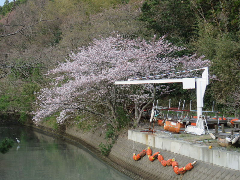 スモールボート揚降ジブクレーン横が満開に近くなってきました。